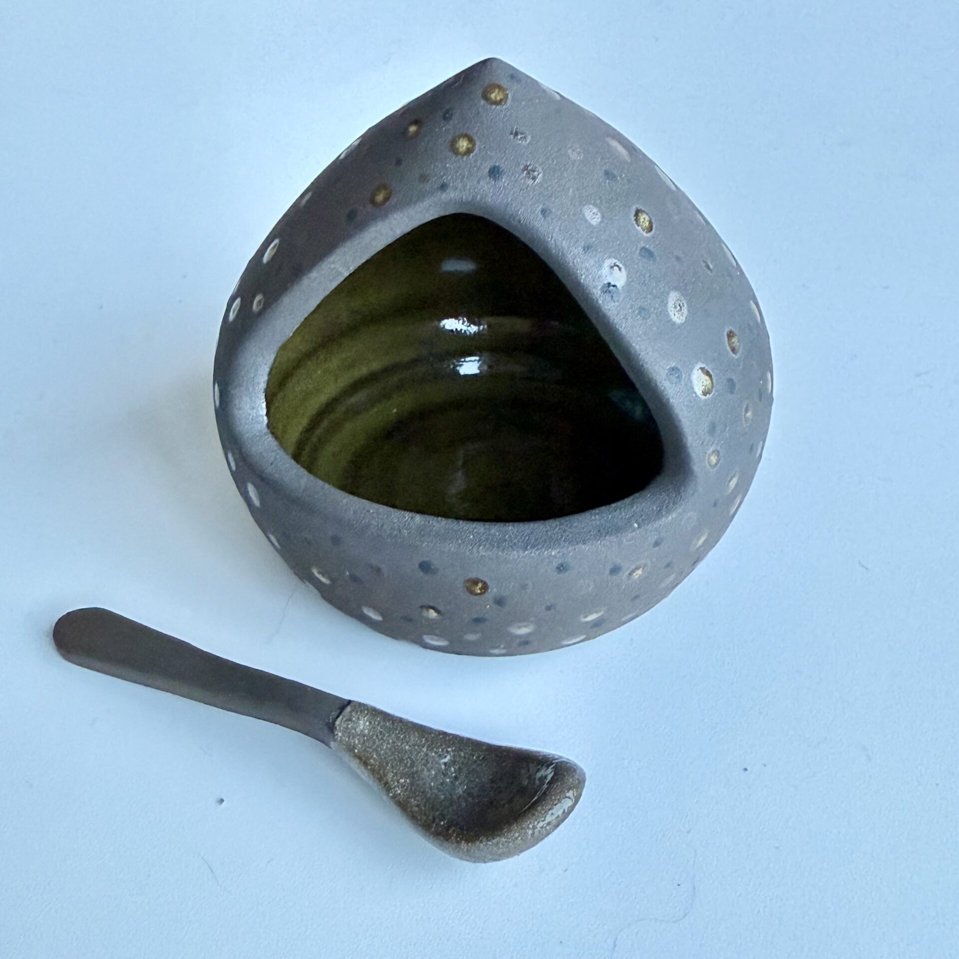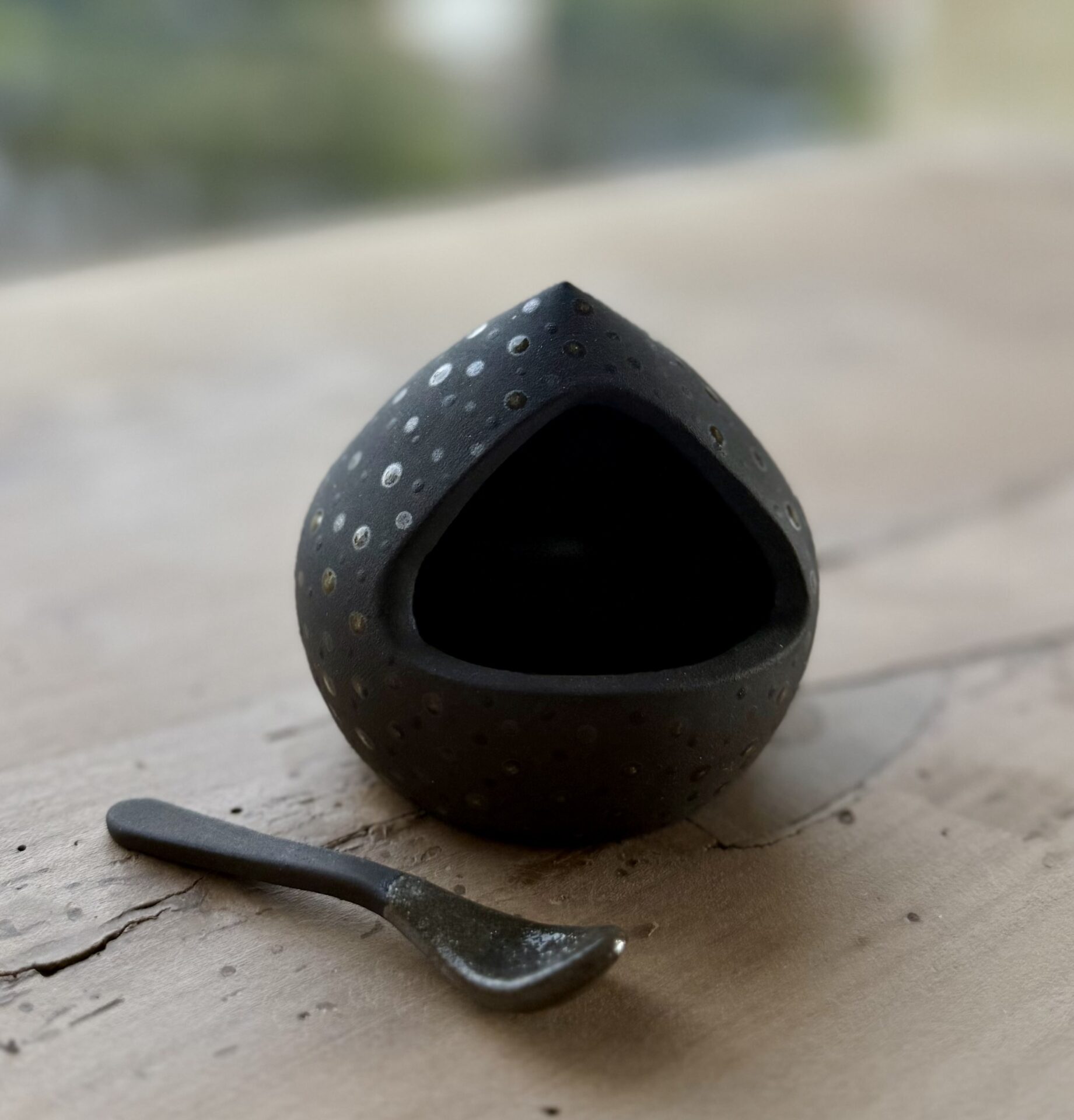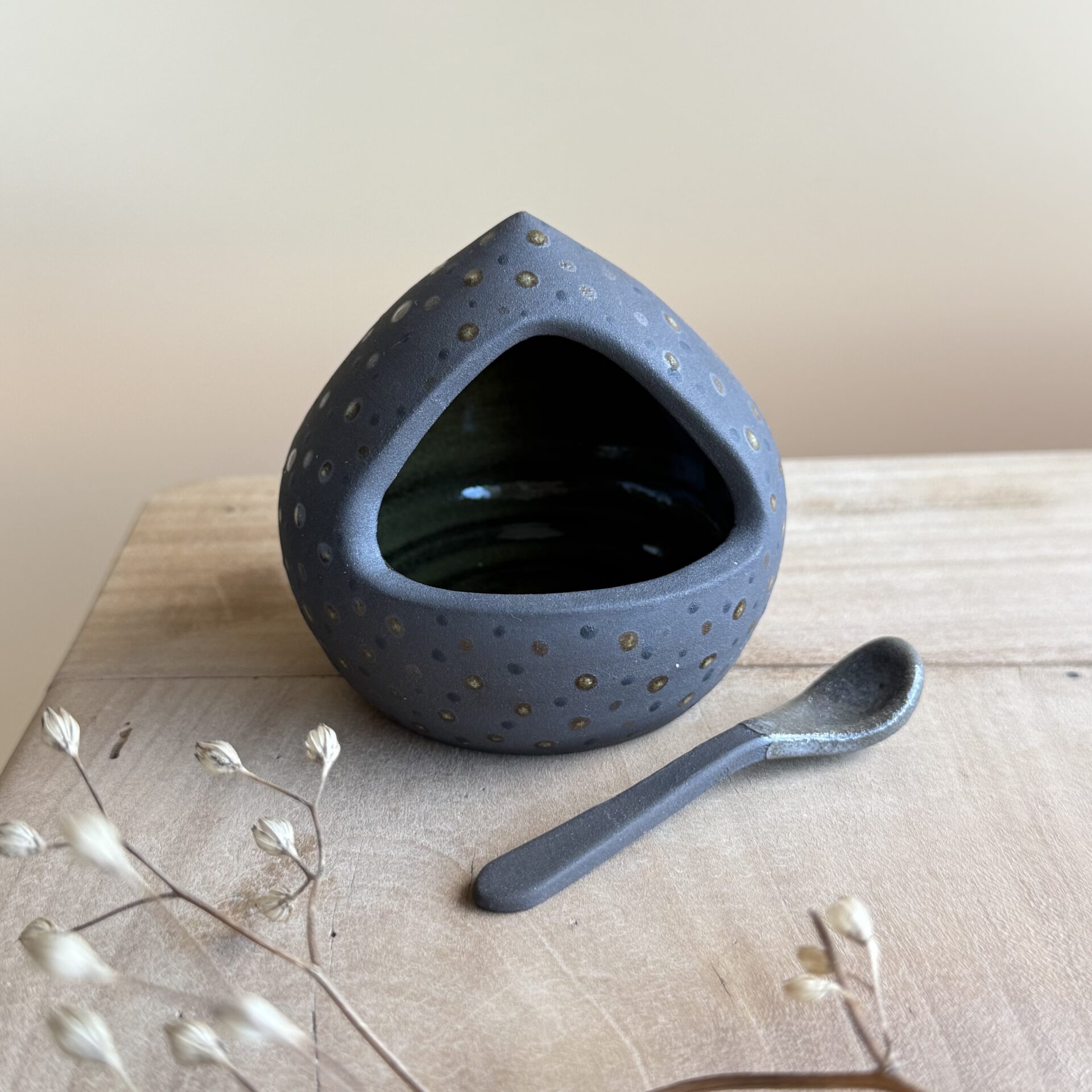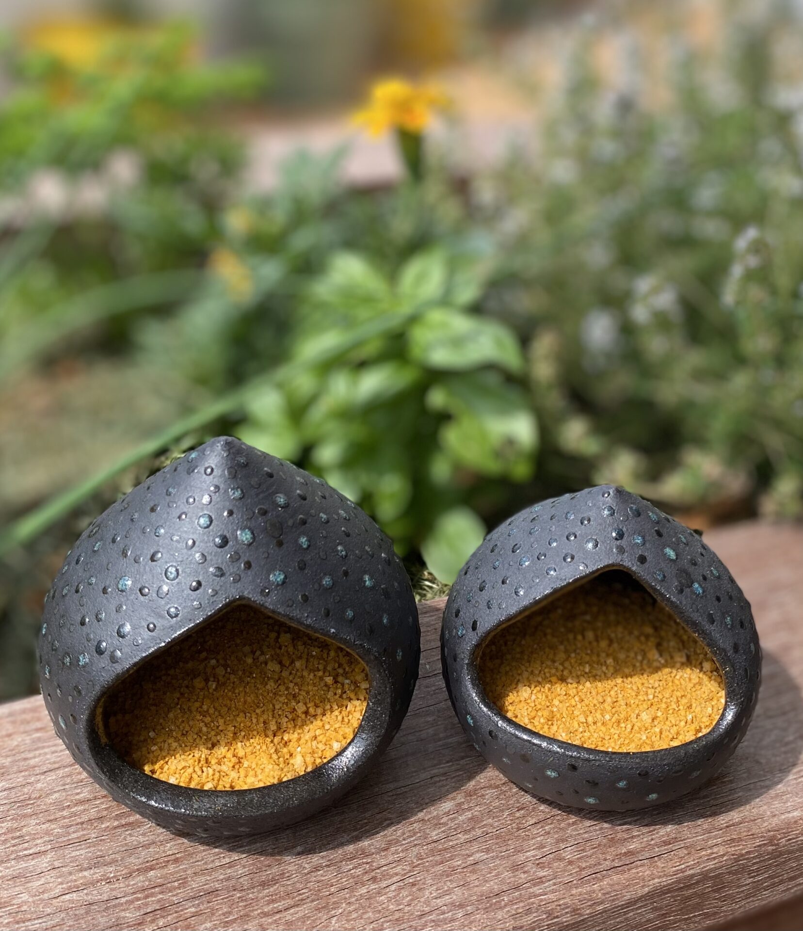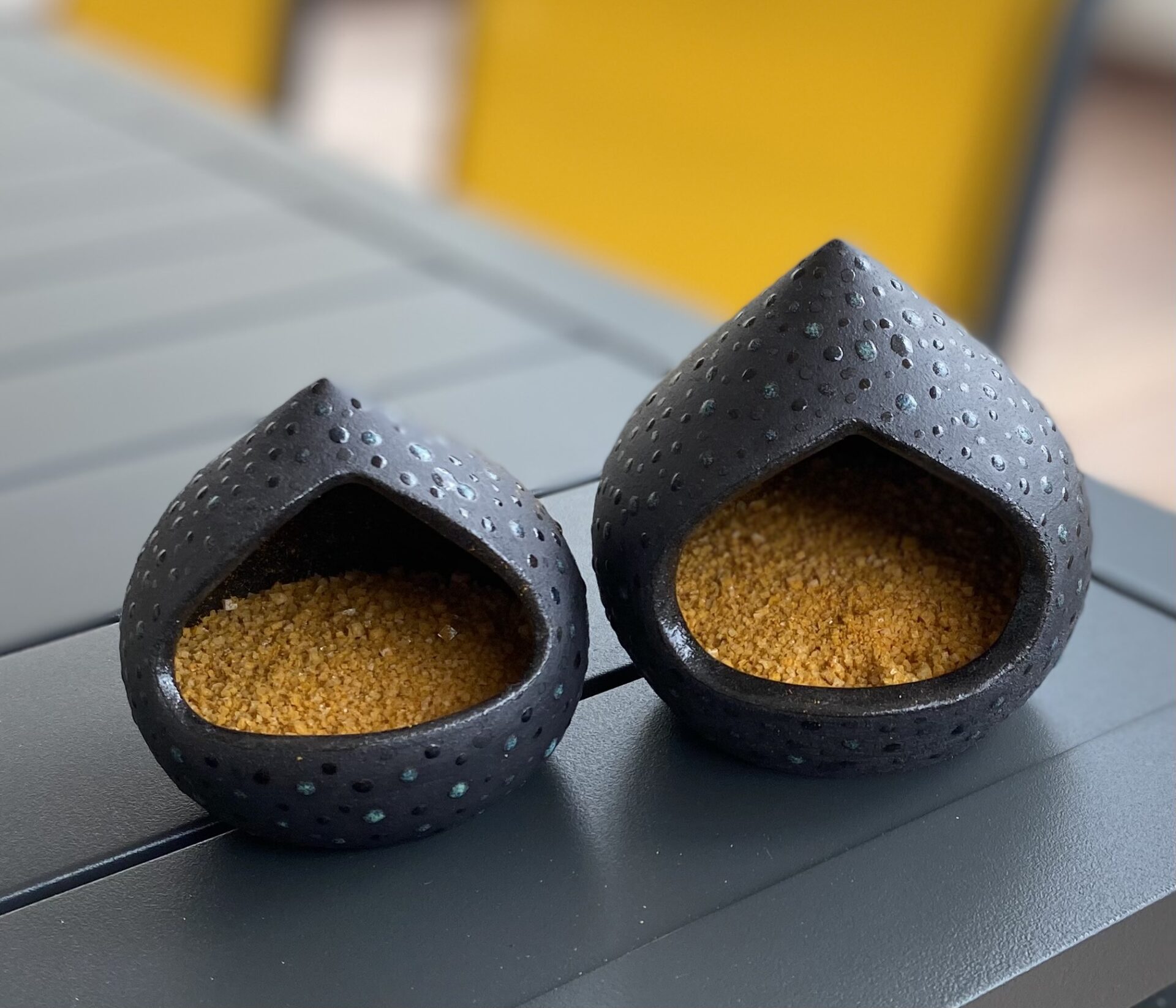 Toutes les pièces sont entièrement façonnées à la main, tournées et émaillées dans mon atelier en Auvergne. Étant fabriquées de façon artisanale, il peut donc y avoir de légères variations en termes de dimensions et de couleur par rapport aux photos et entre les différentes pièces d’une même série.