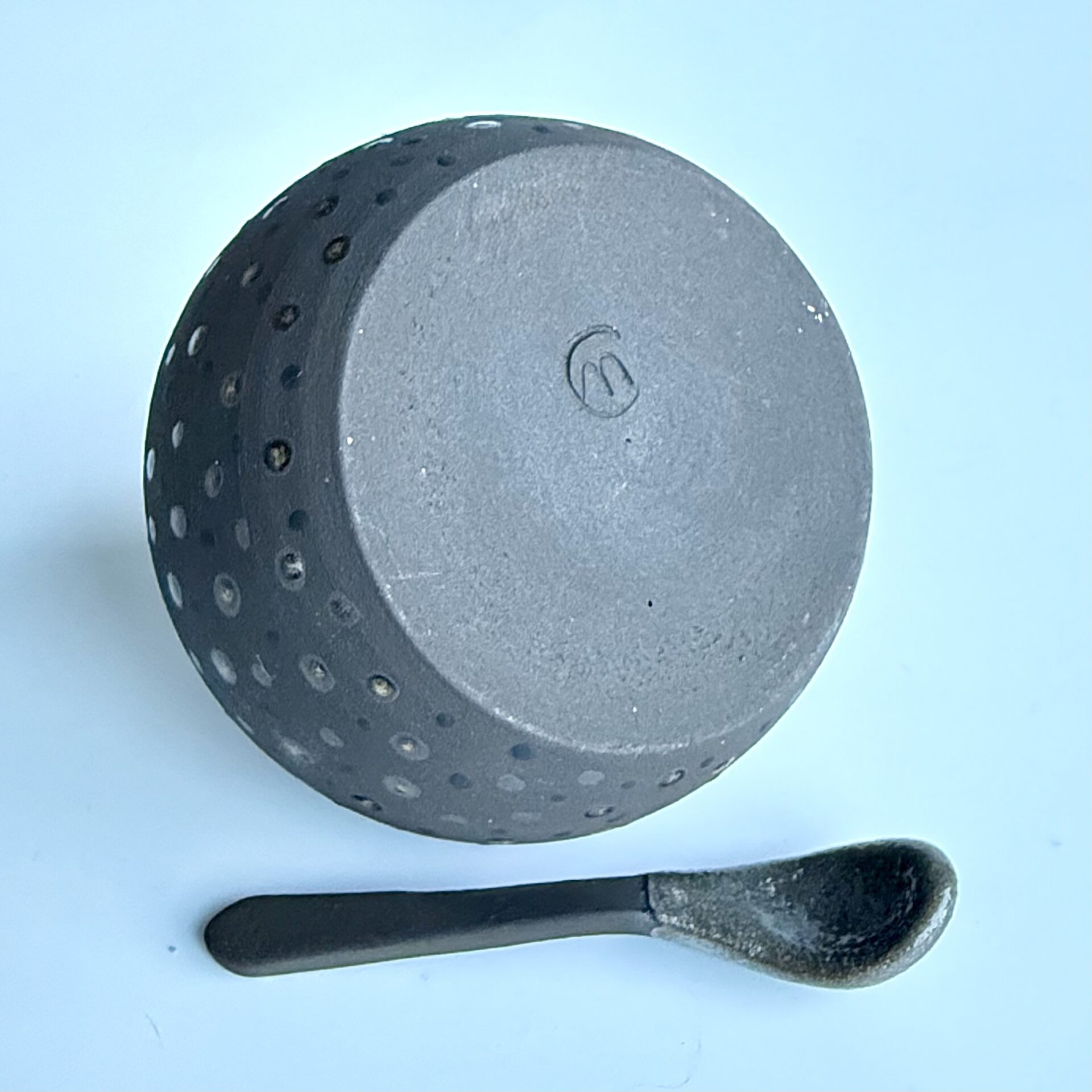 Emaillé à l’intérieur, terre brute ponctuée de points à l’extérieur