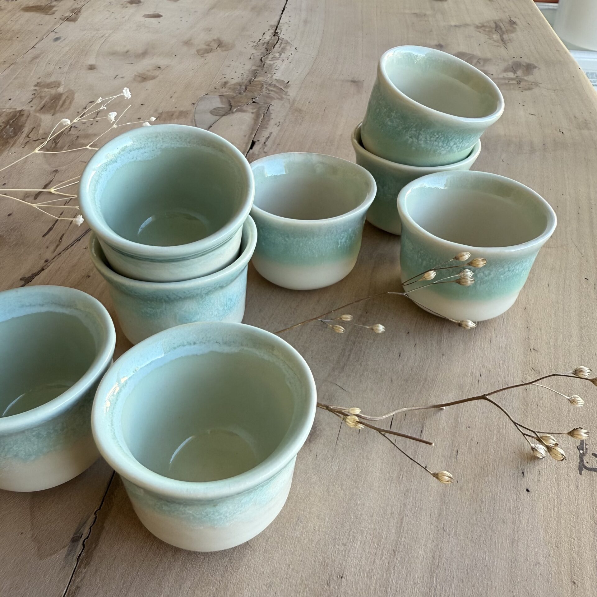Toutes les pièces sont entièrement façonnées à la main, tournées et émaillées dans mon atelier en Auvergne. Étant fabriquées de façon artisanale, il peut donc y avoir de légères variations en termes de dimensions et de couleur par rapport aux photos et entre les différentes pièces d’une même série. Cette vaisselle est adaptée au contact alimentaire et faite pour un usage quotidien. Elle est également compatible avec le lave-vaisselle et le micro-ondes, mais pas pour le four.