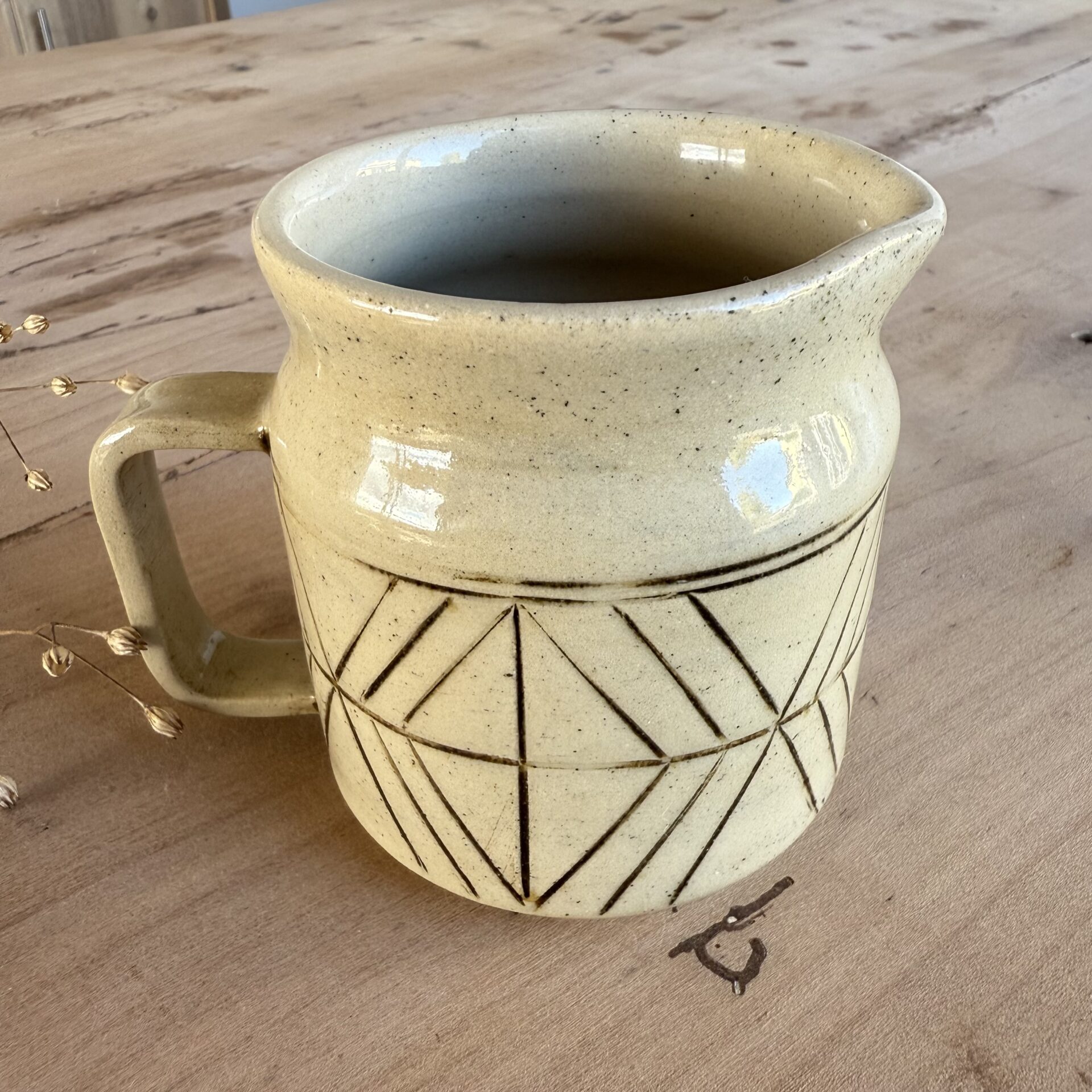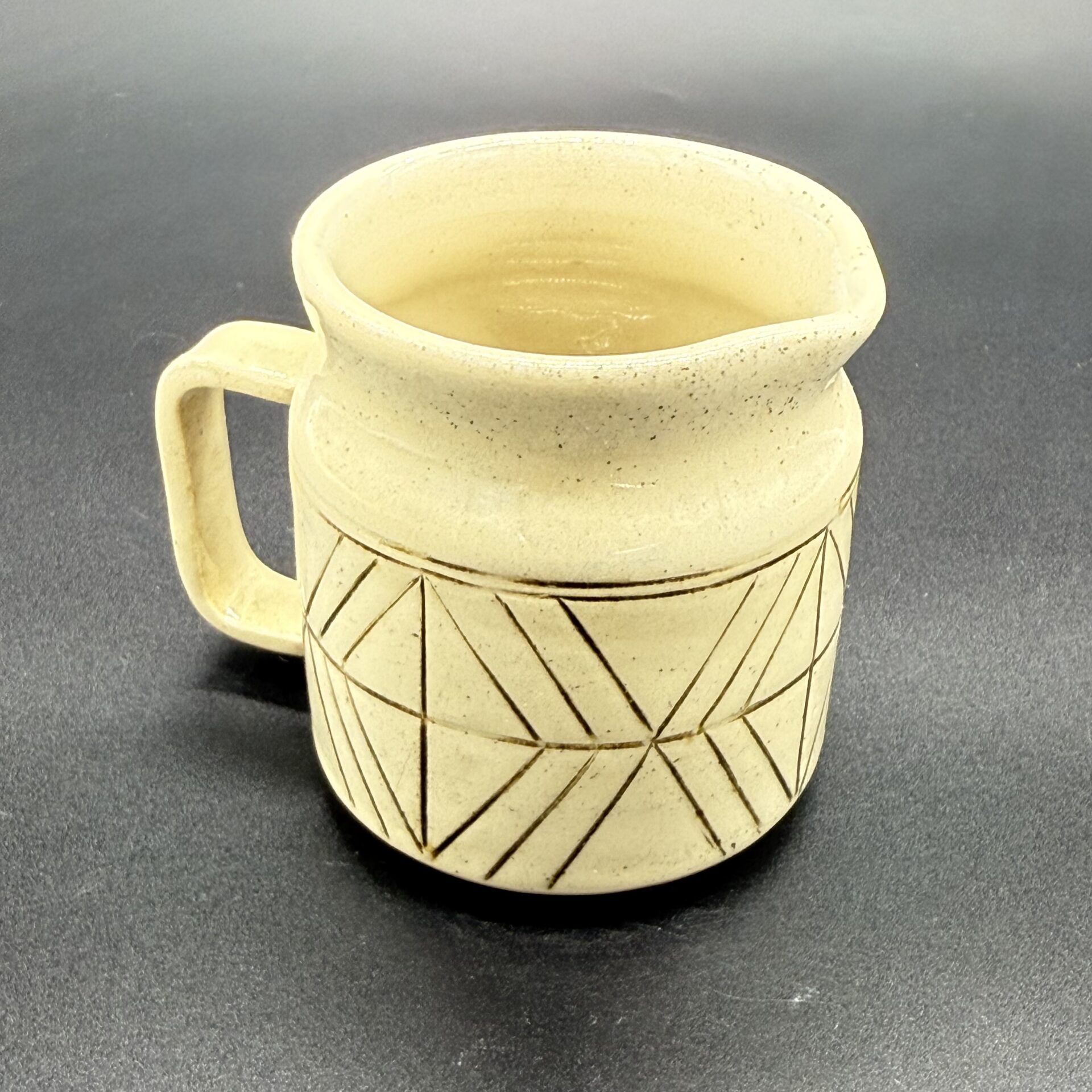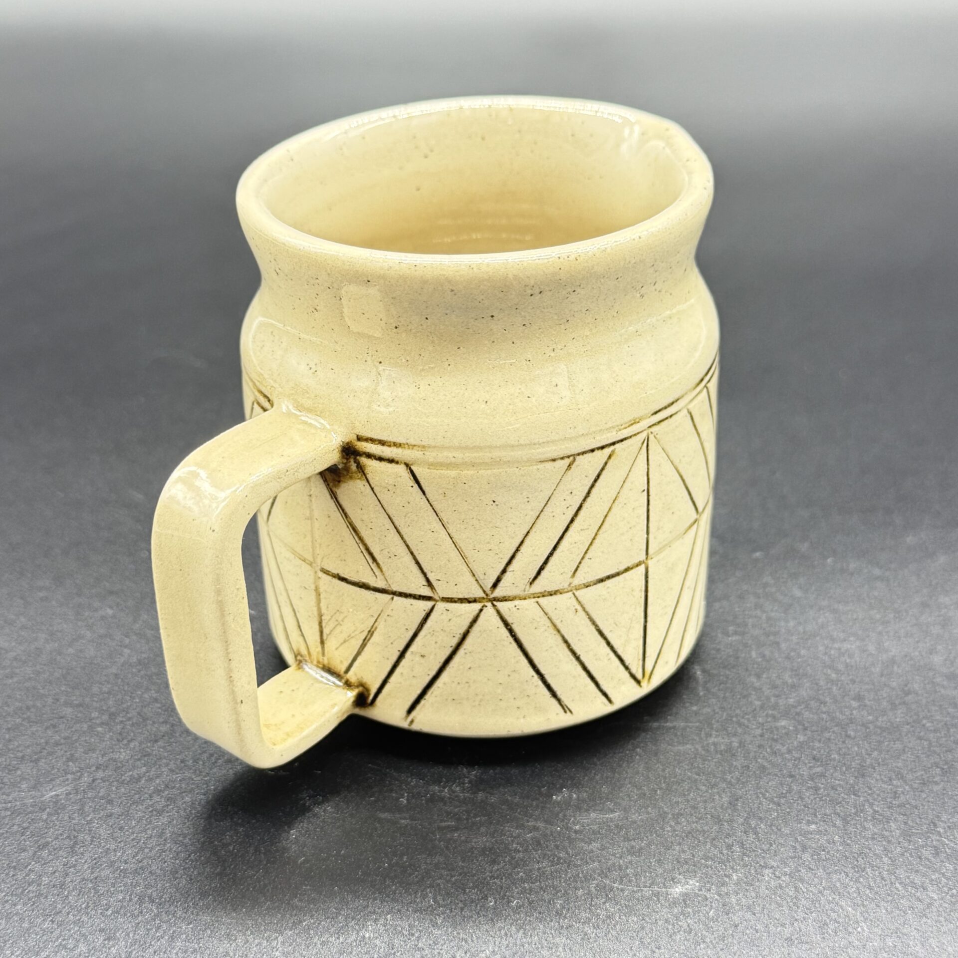 Motifs incrustés bruns, email transparent laissant visible la terre beige.