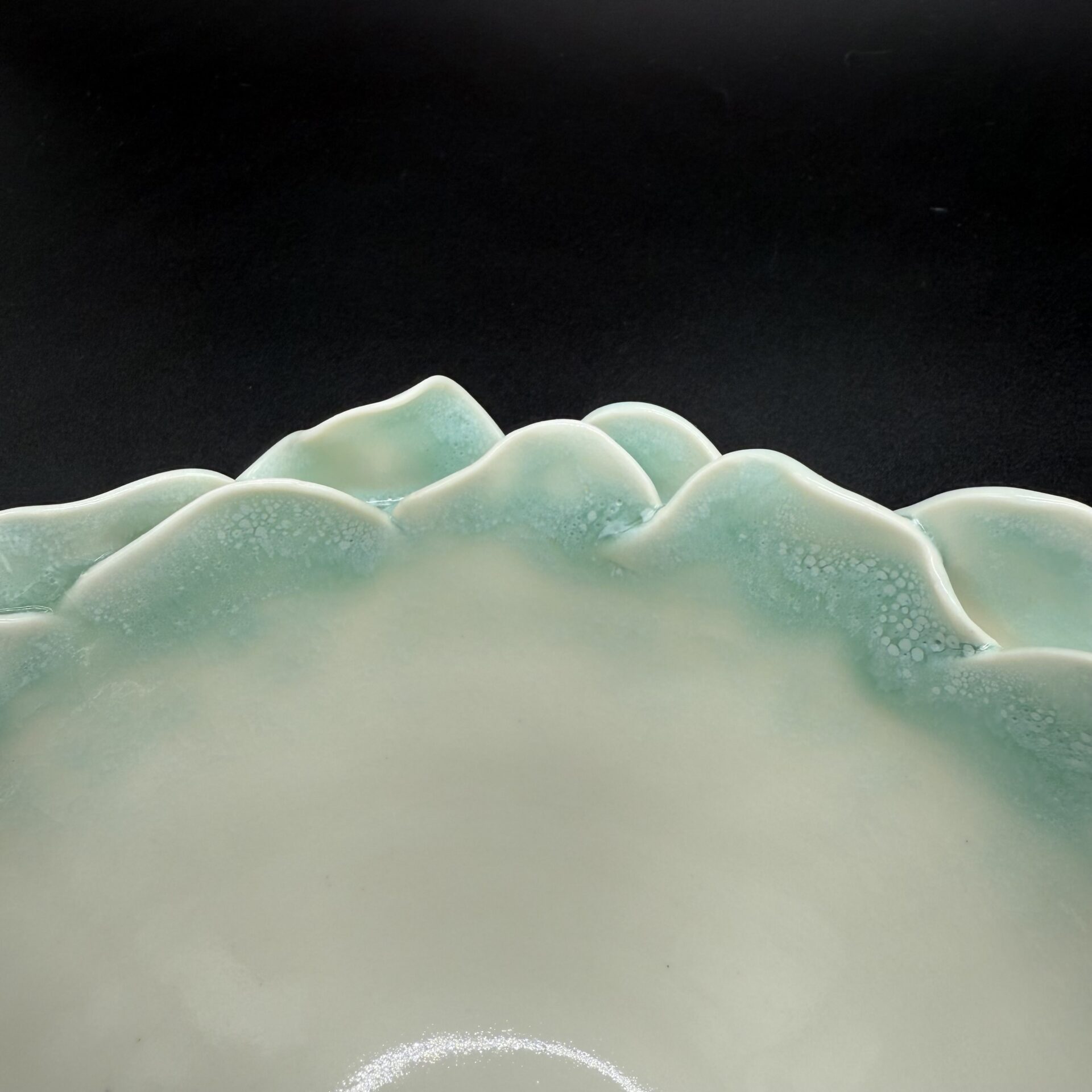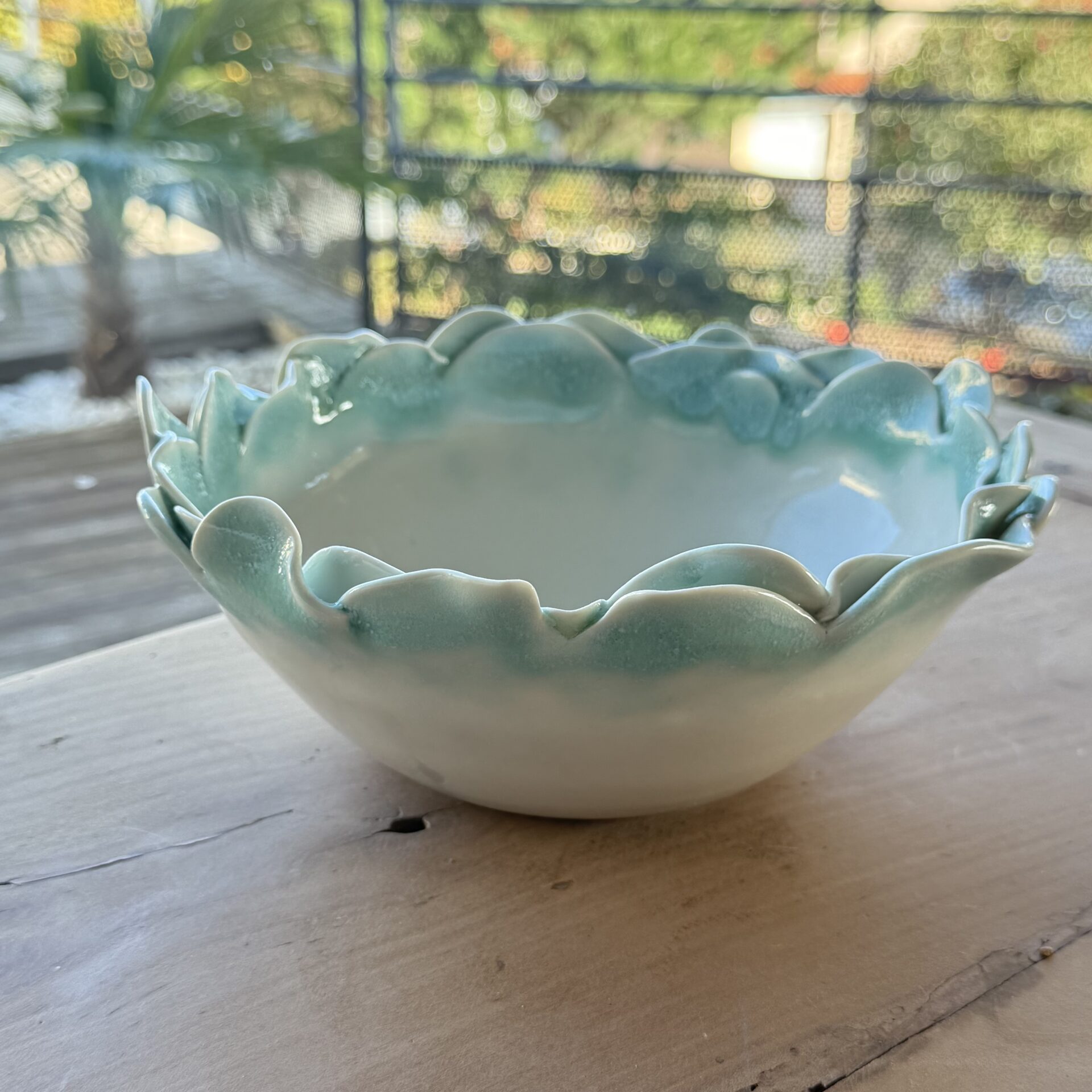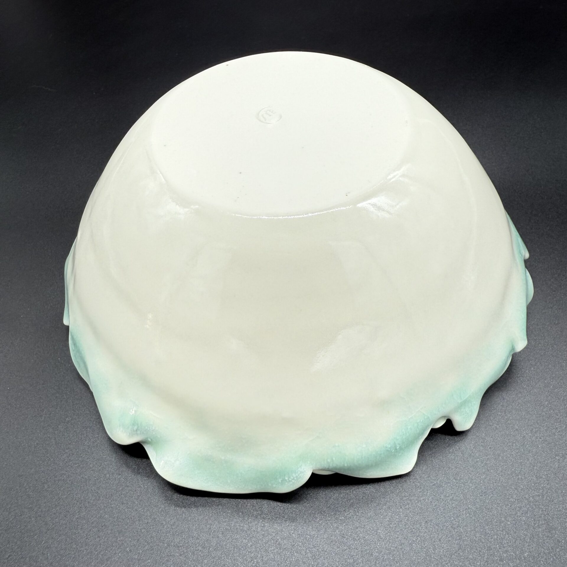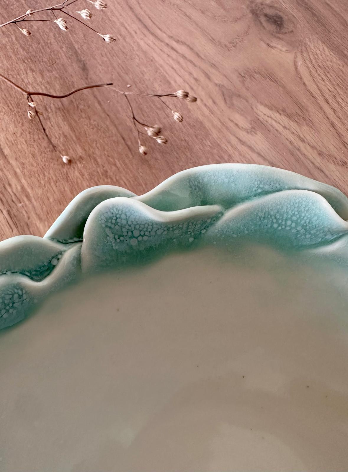 Fait main En porcelaine blanche Email transparent laissant visible la blancheur de la porcelaine et turquoise avec effets