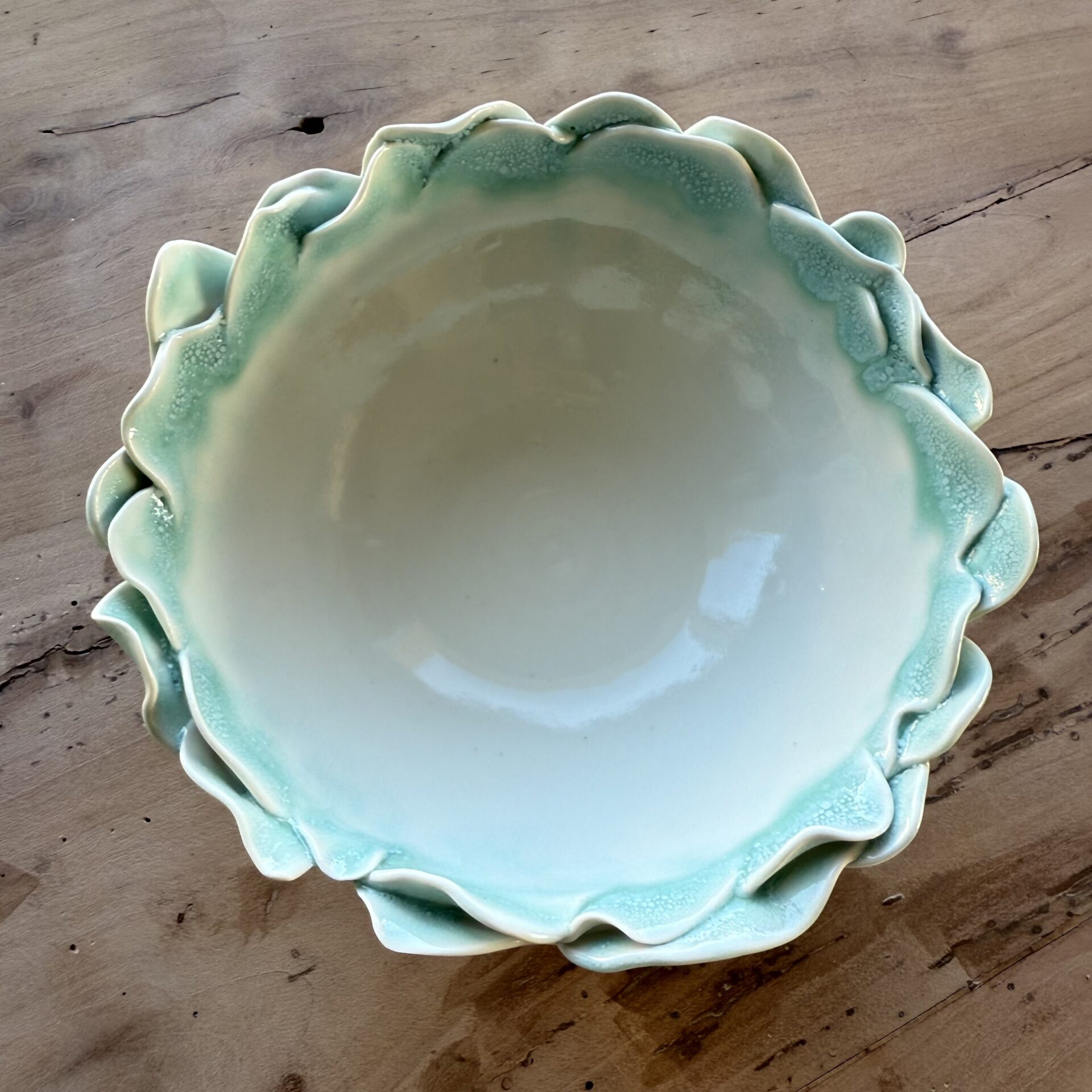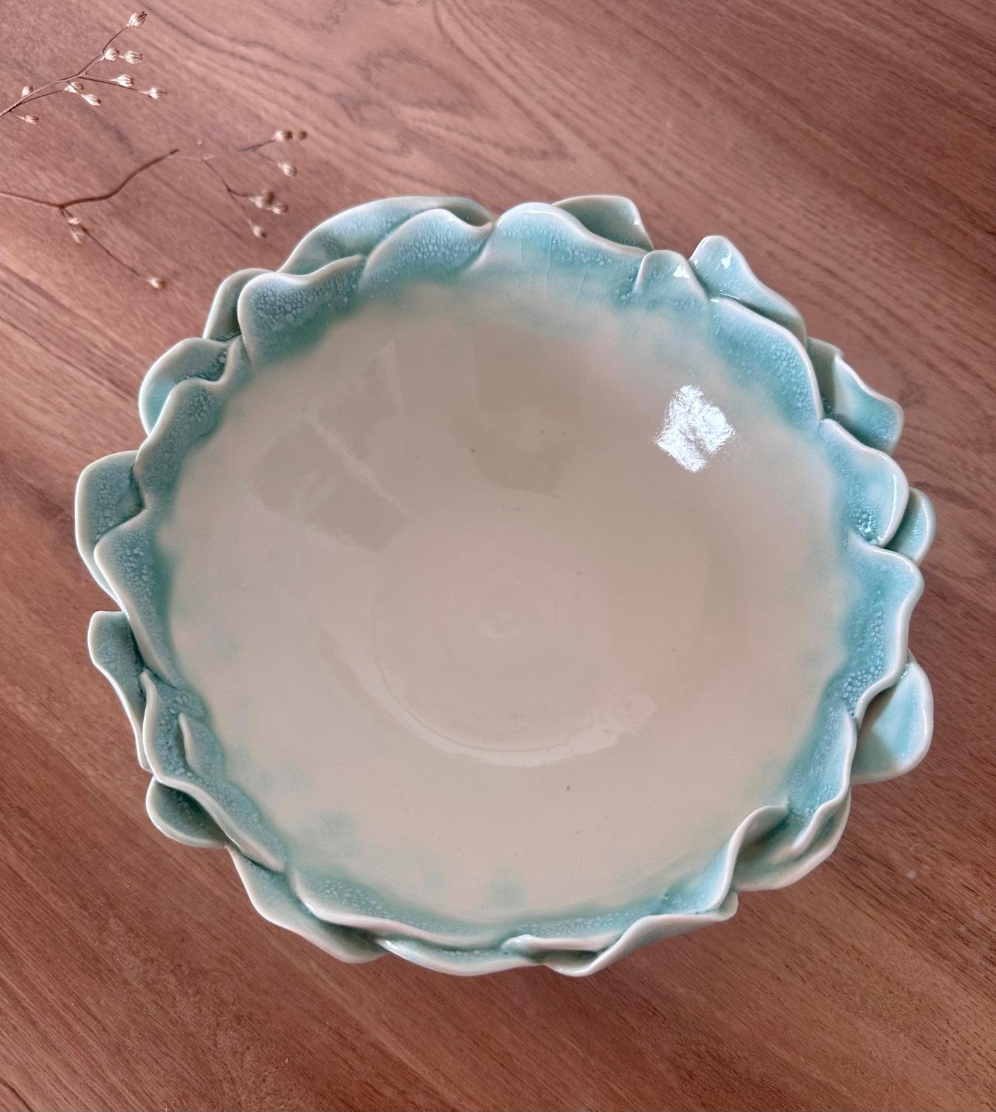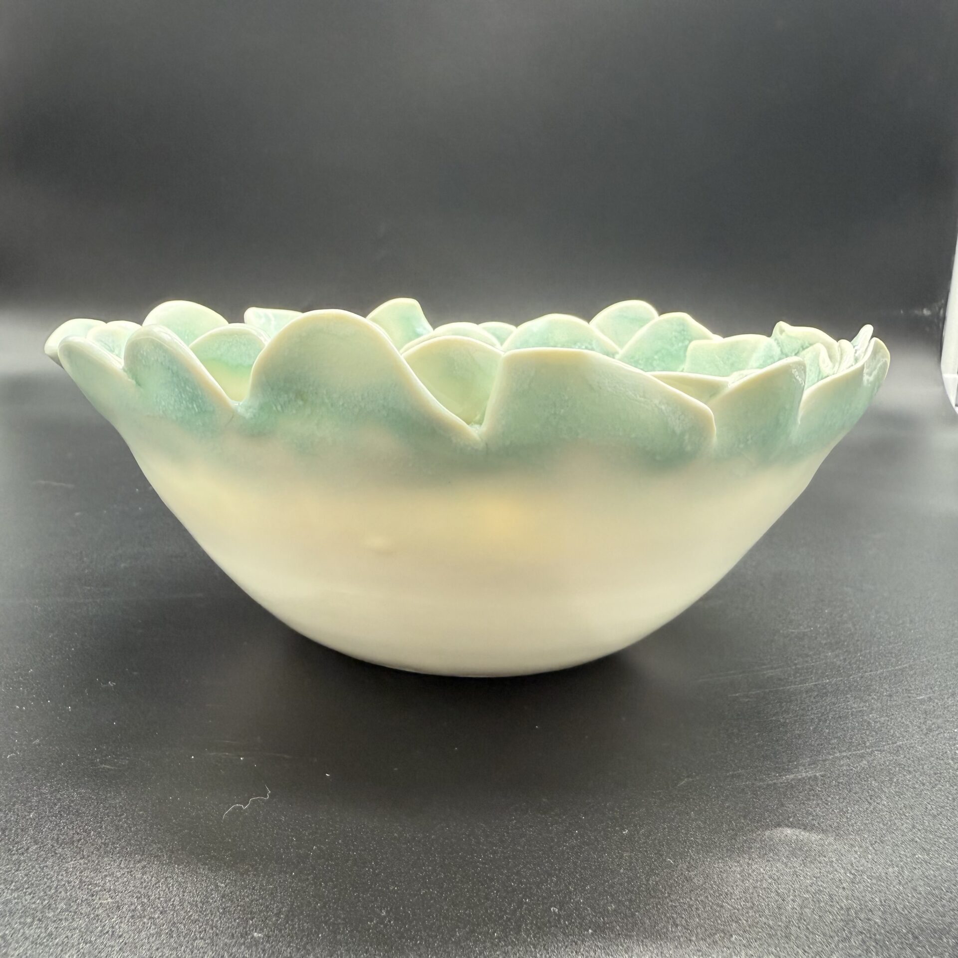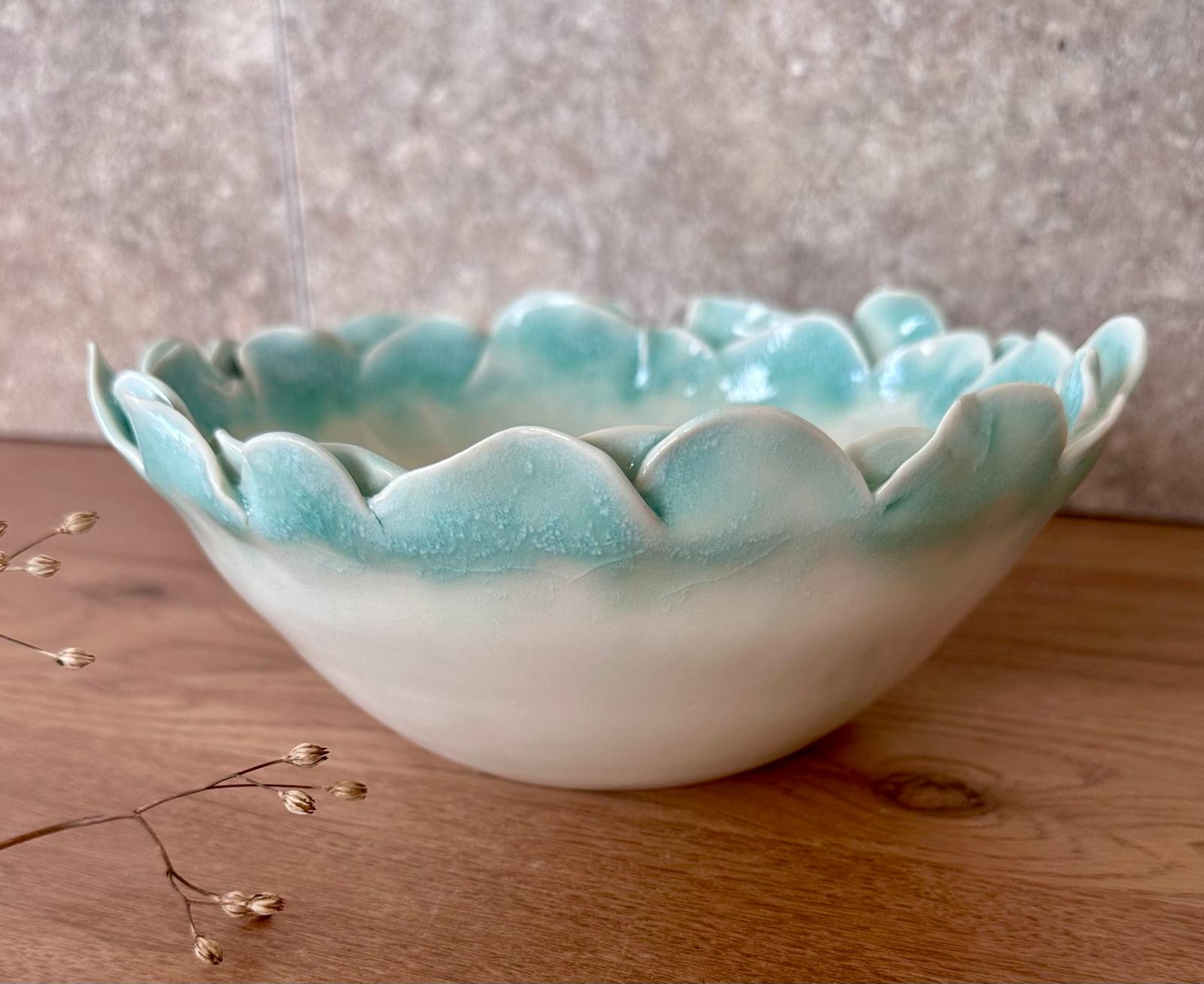 Fait main En porcelaine blanche Email transparent laissant visible la blancheur de la porcelaine et turquoise avec effets