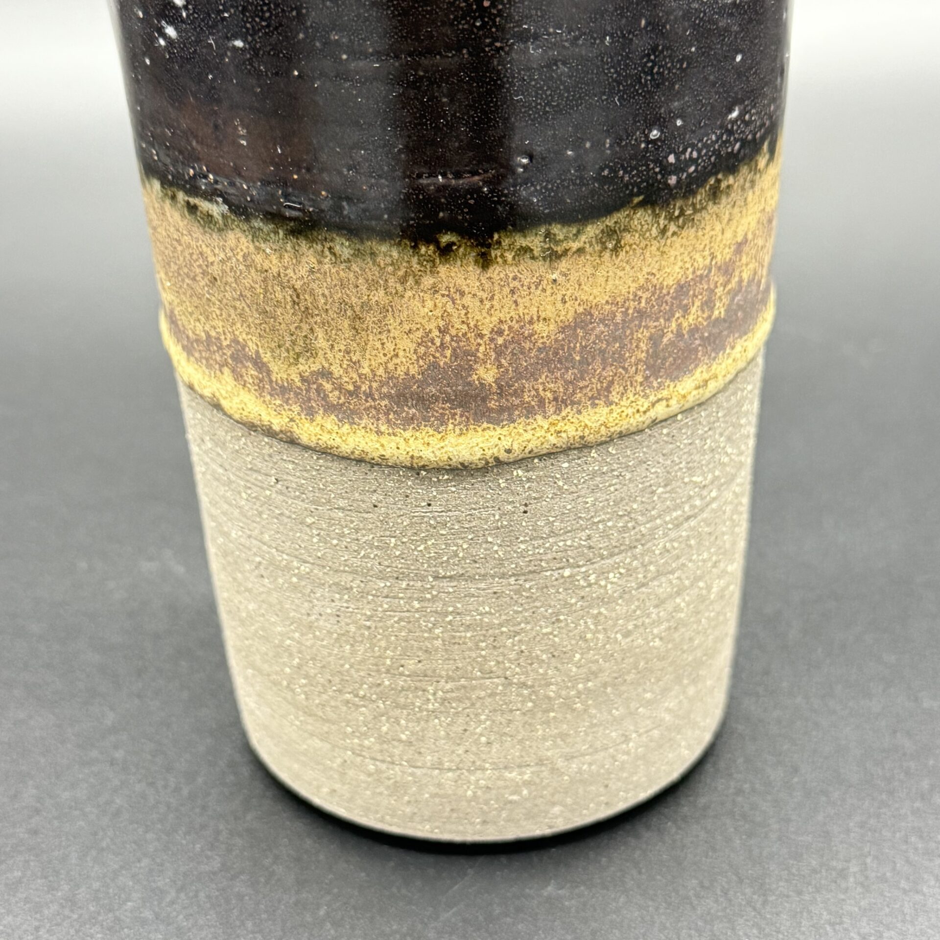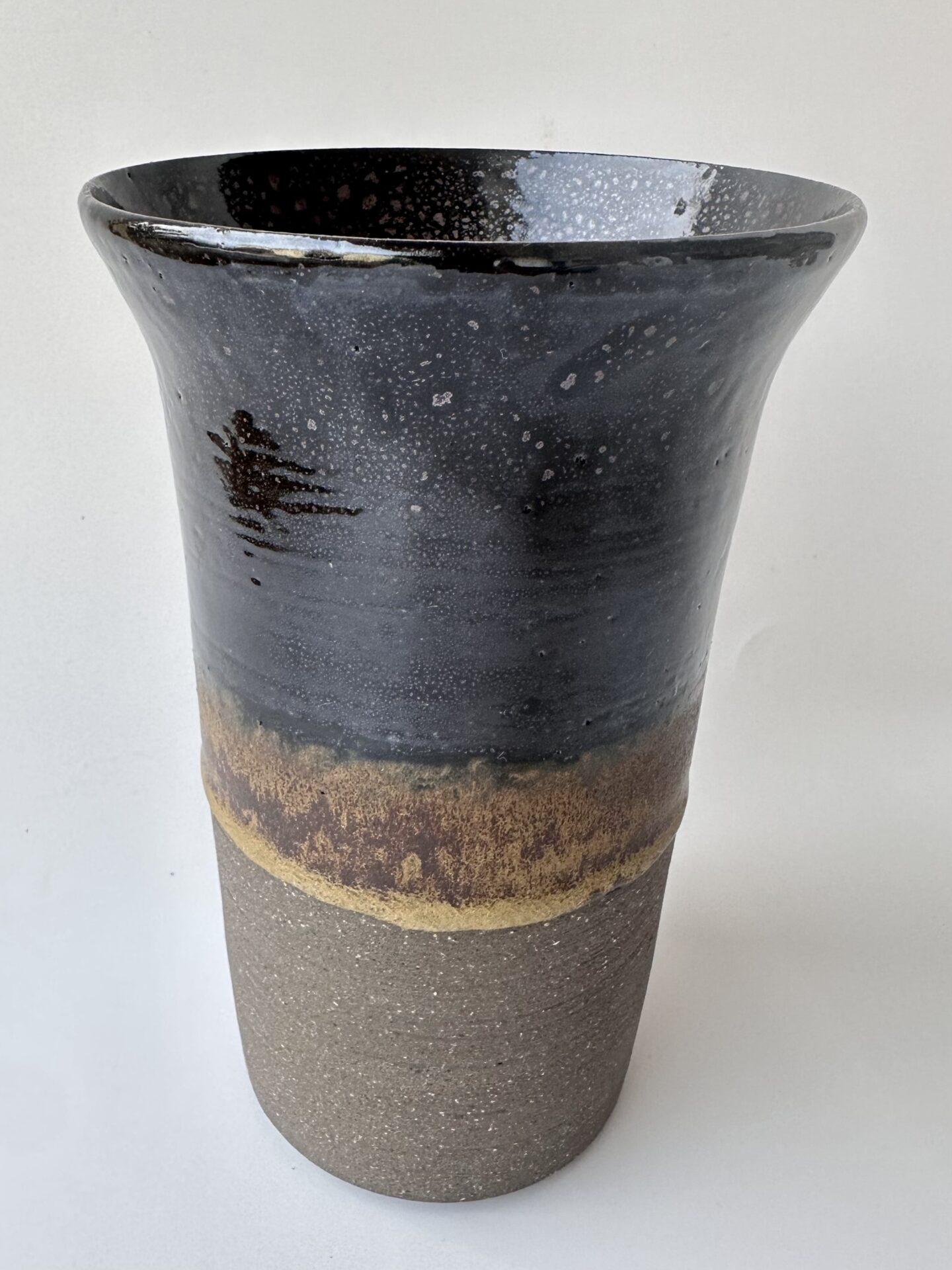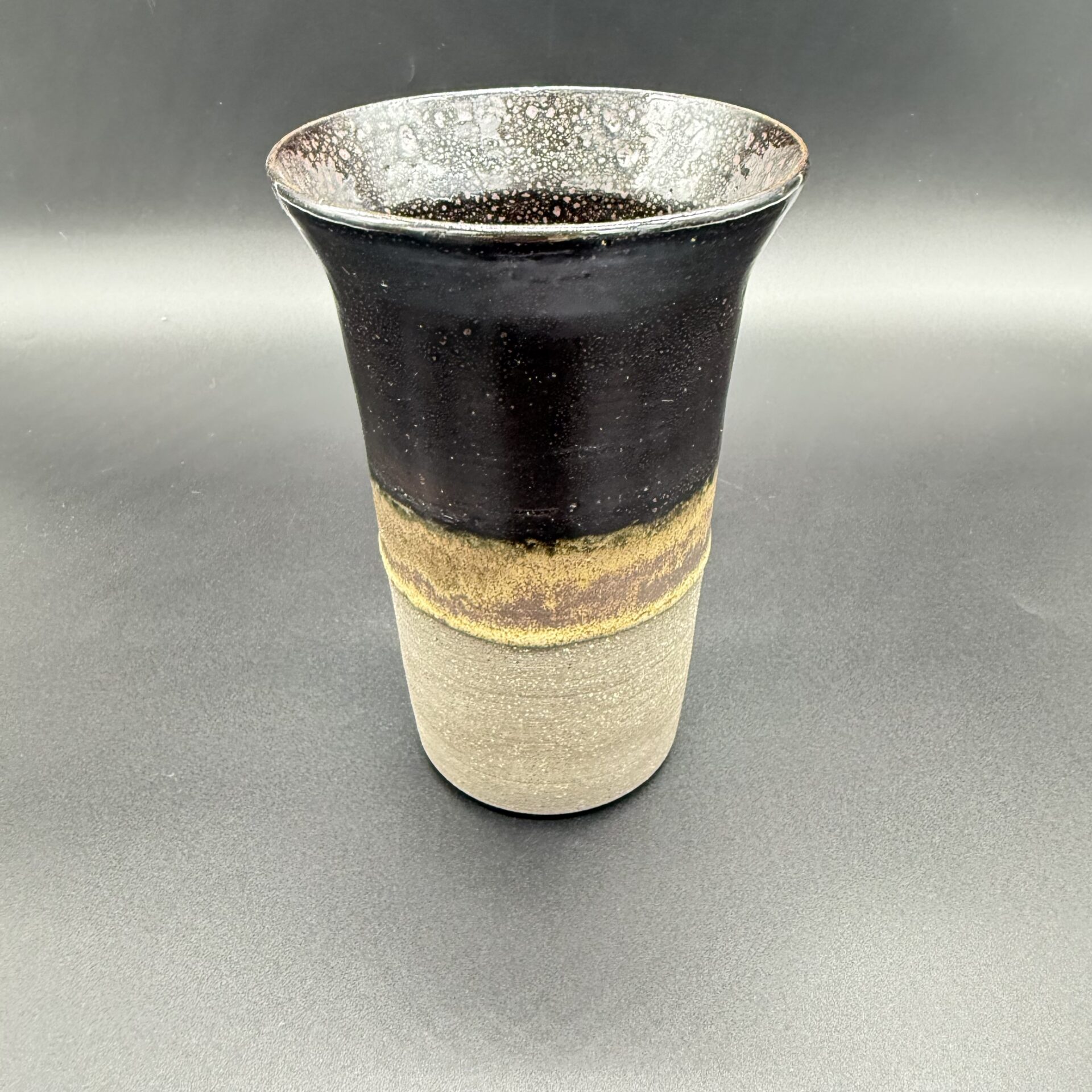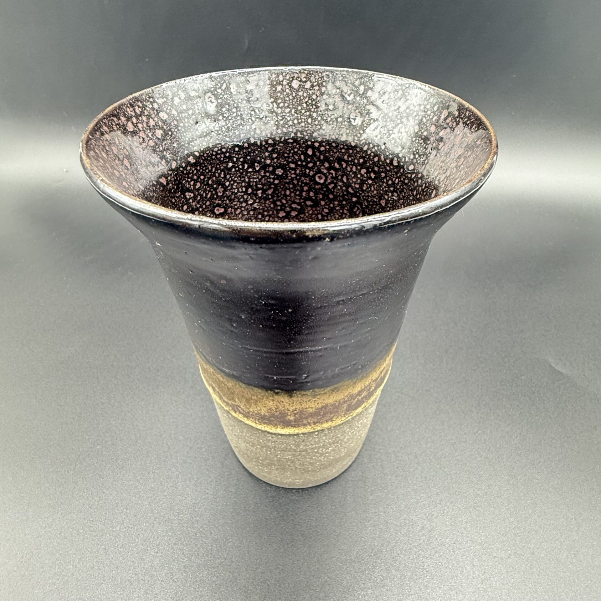 Fait main En grès noir Emaillé en 2 couleurs : Noir moucheté et bande « reflets marron »