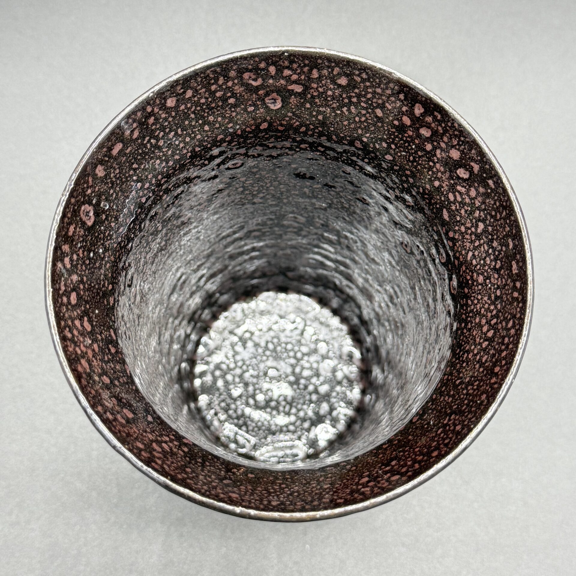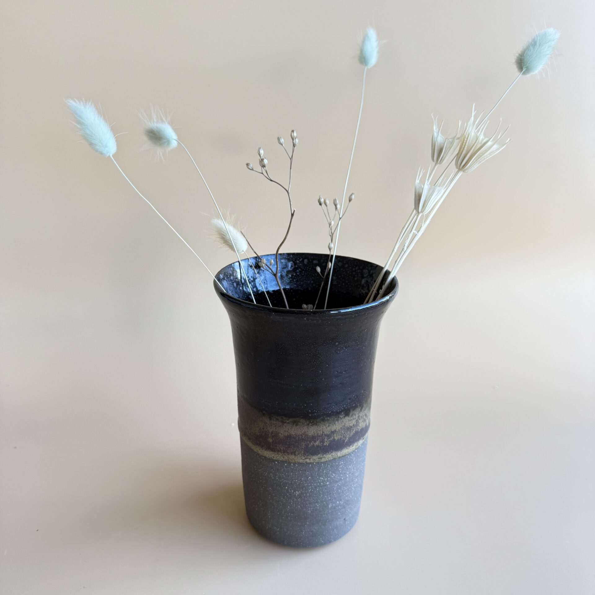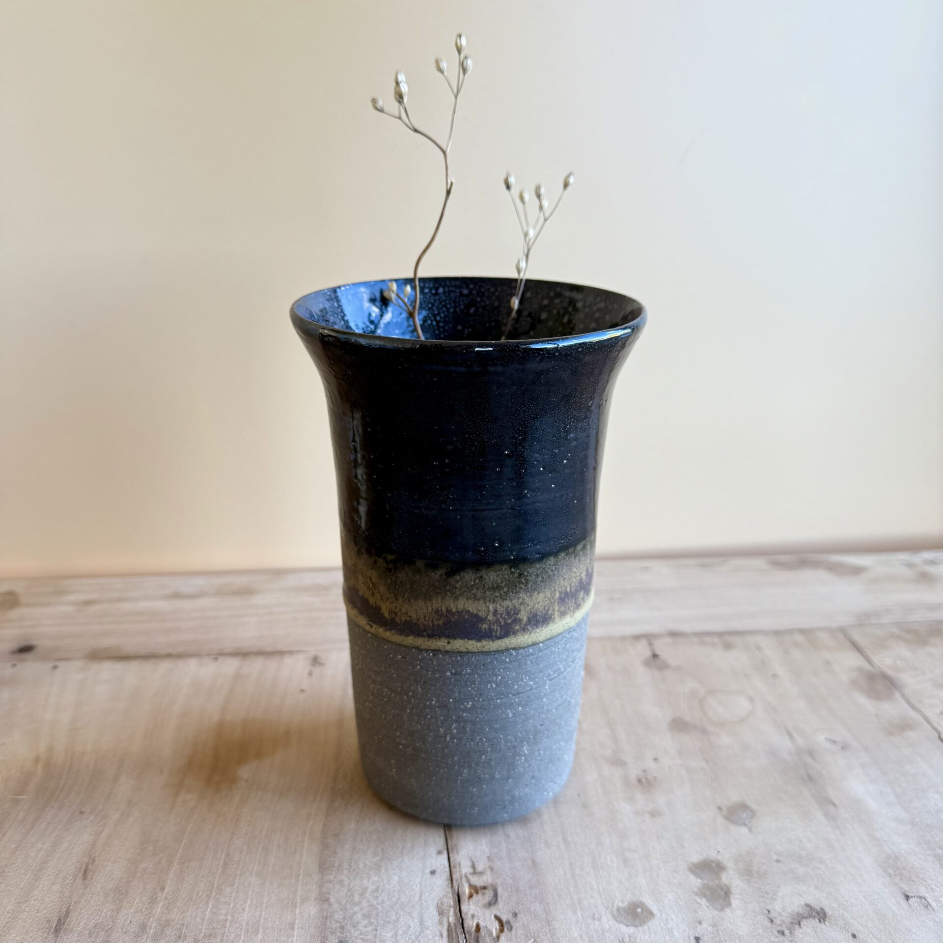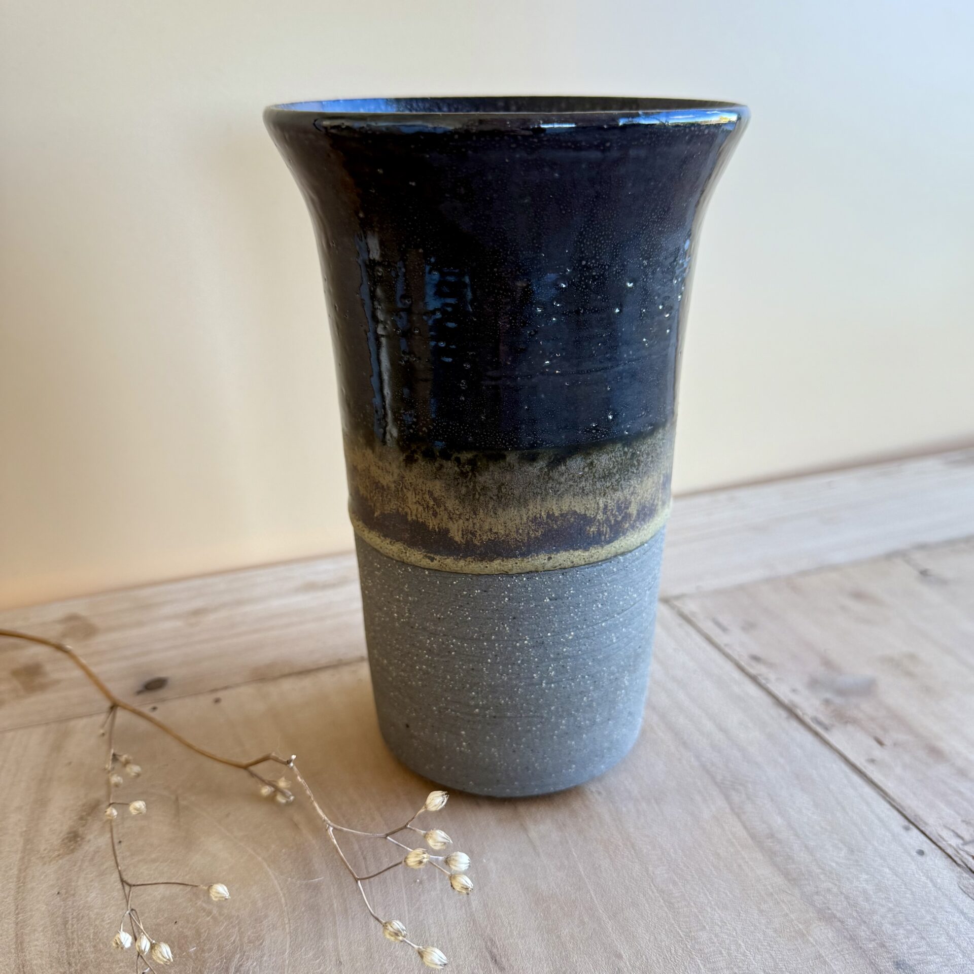 Fait main En grès noir Emaillé en 2 couleurs : Noir moucheté et bande « reflets marron »
