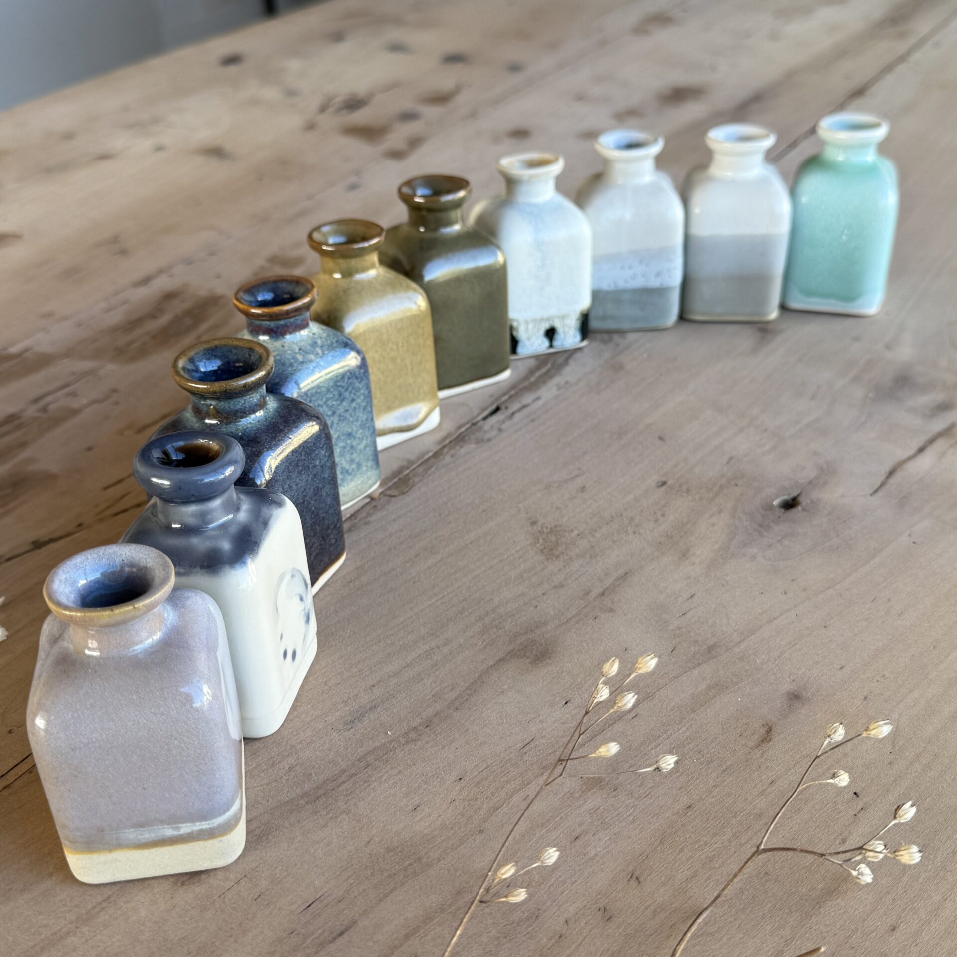 Toutes les pièces sont entièrement façonnées à la main, tournées et émaillées dans mon atelier en Auvergne. Étant fabriquées de façon artisanale, il peut donc y avoir de légères variations en termes de dimensions et de couleur par rapport aux photos et entre les différentes pièces d’une même série.
