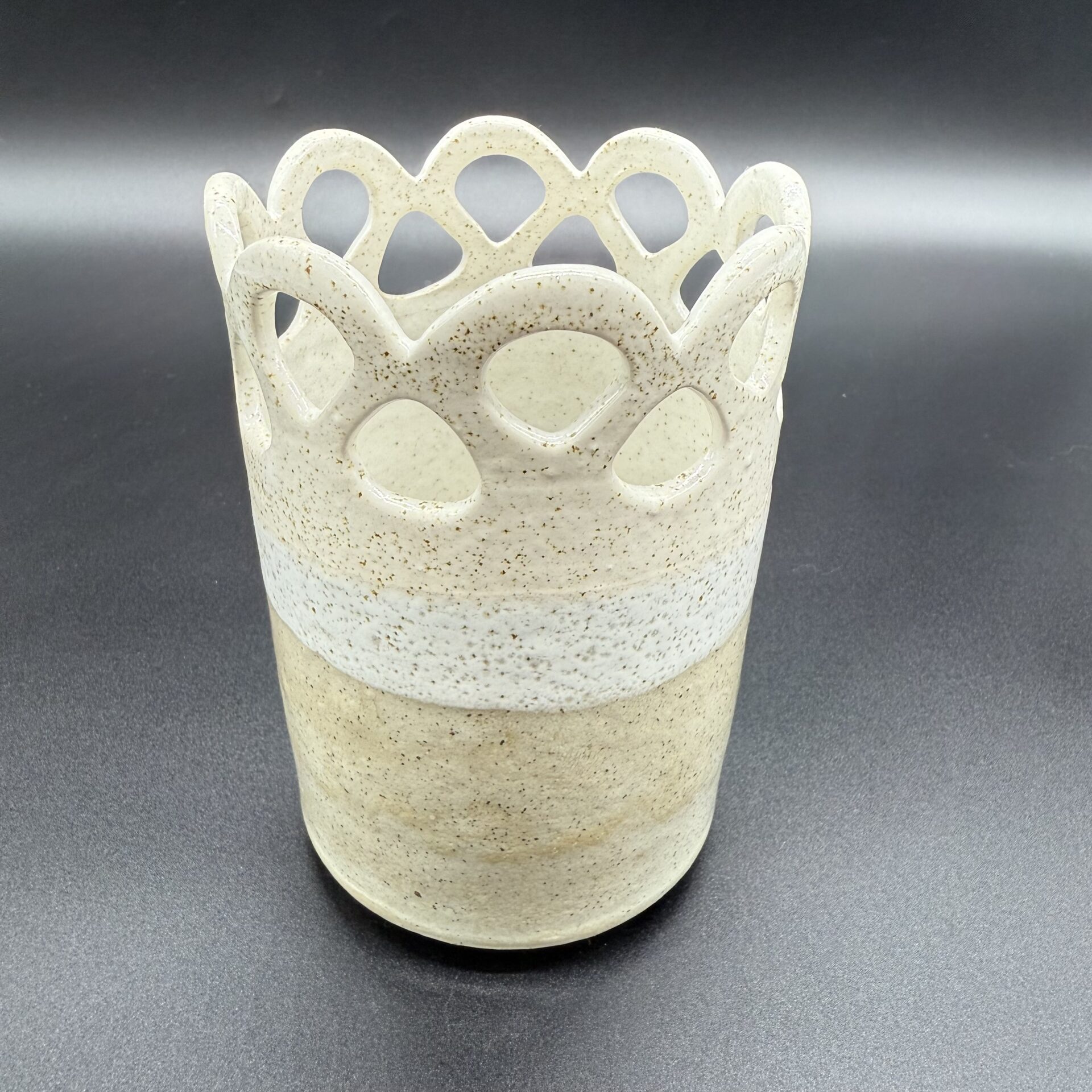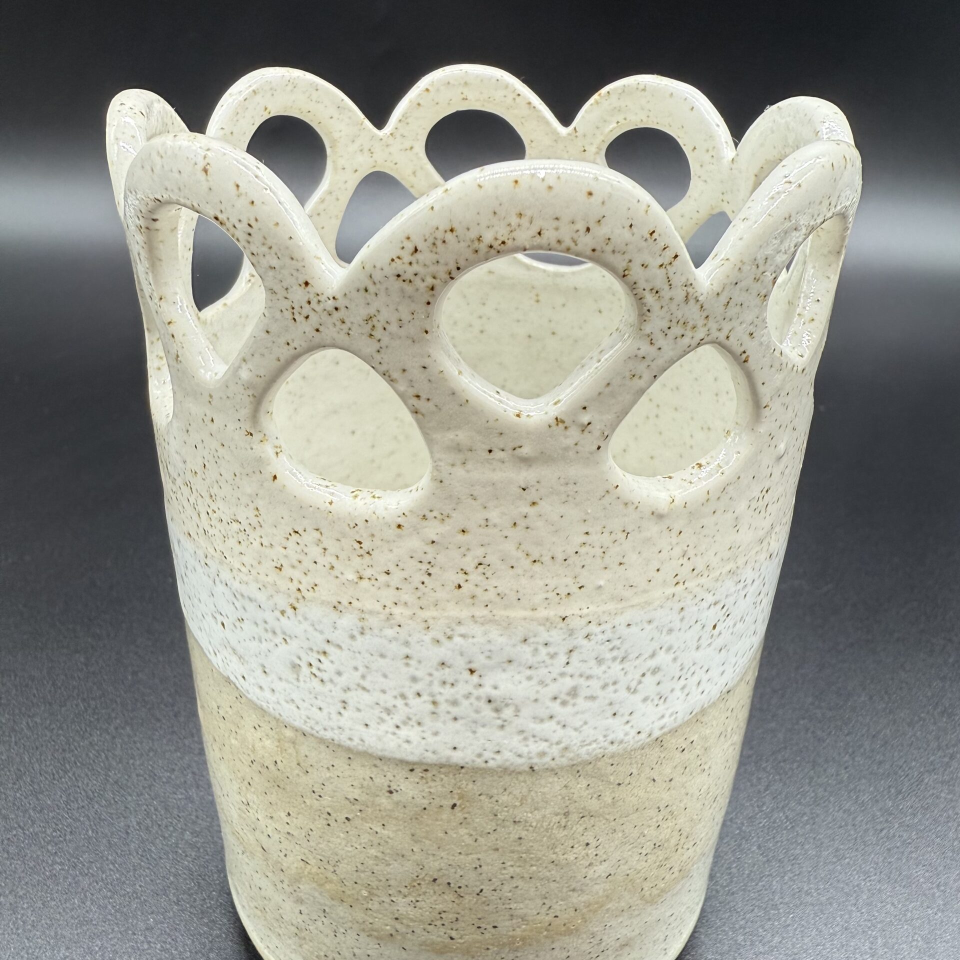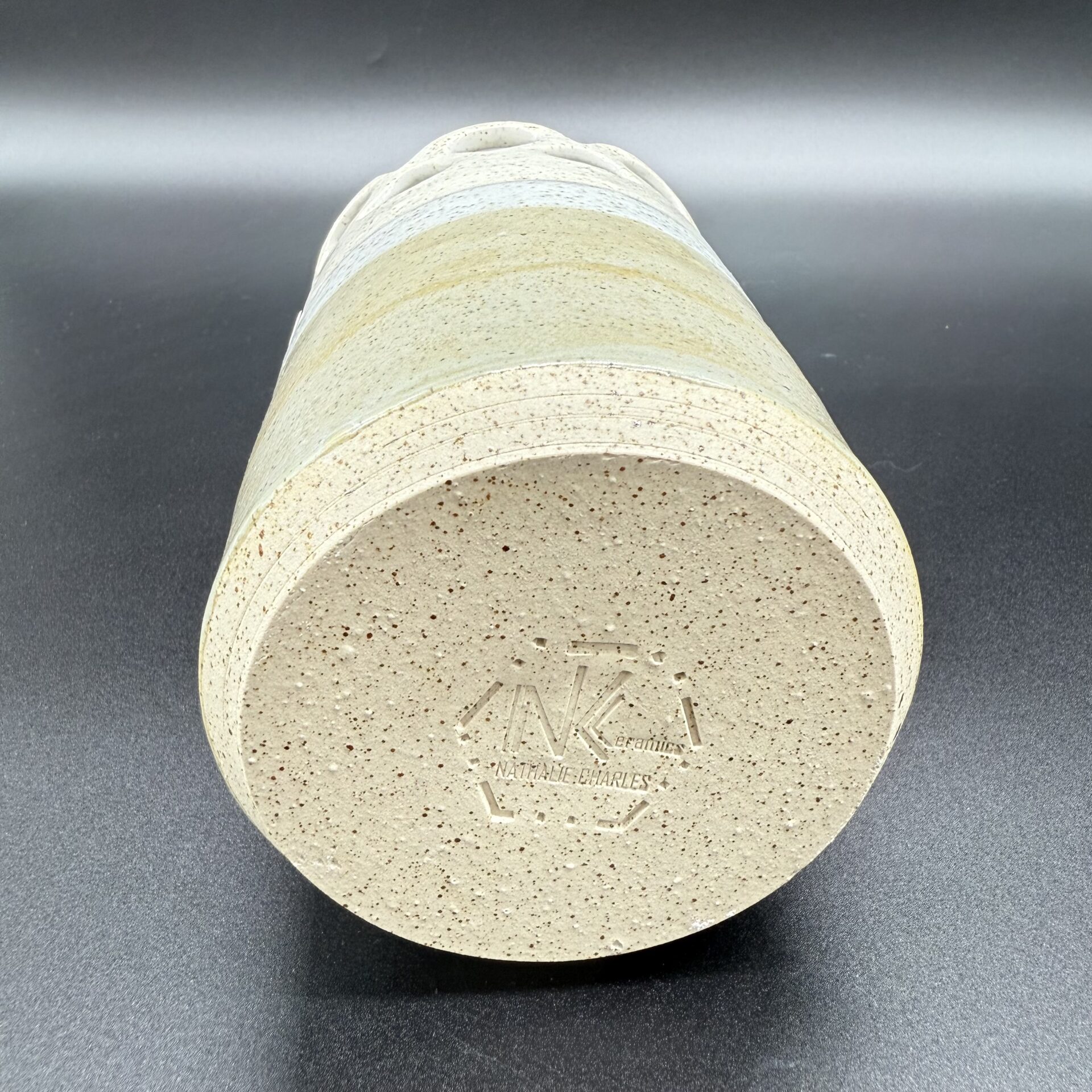 Fait main En grès blanc pyrité Email Blanc & Gris, ponctué de points de pyrites