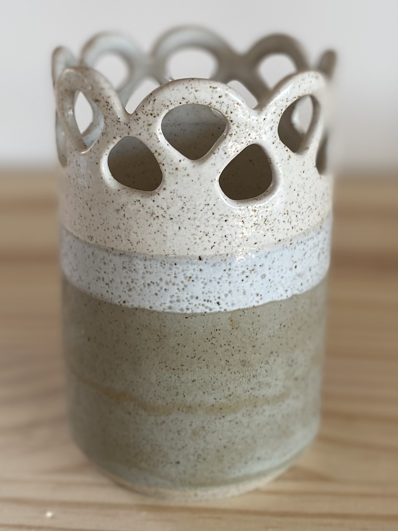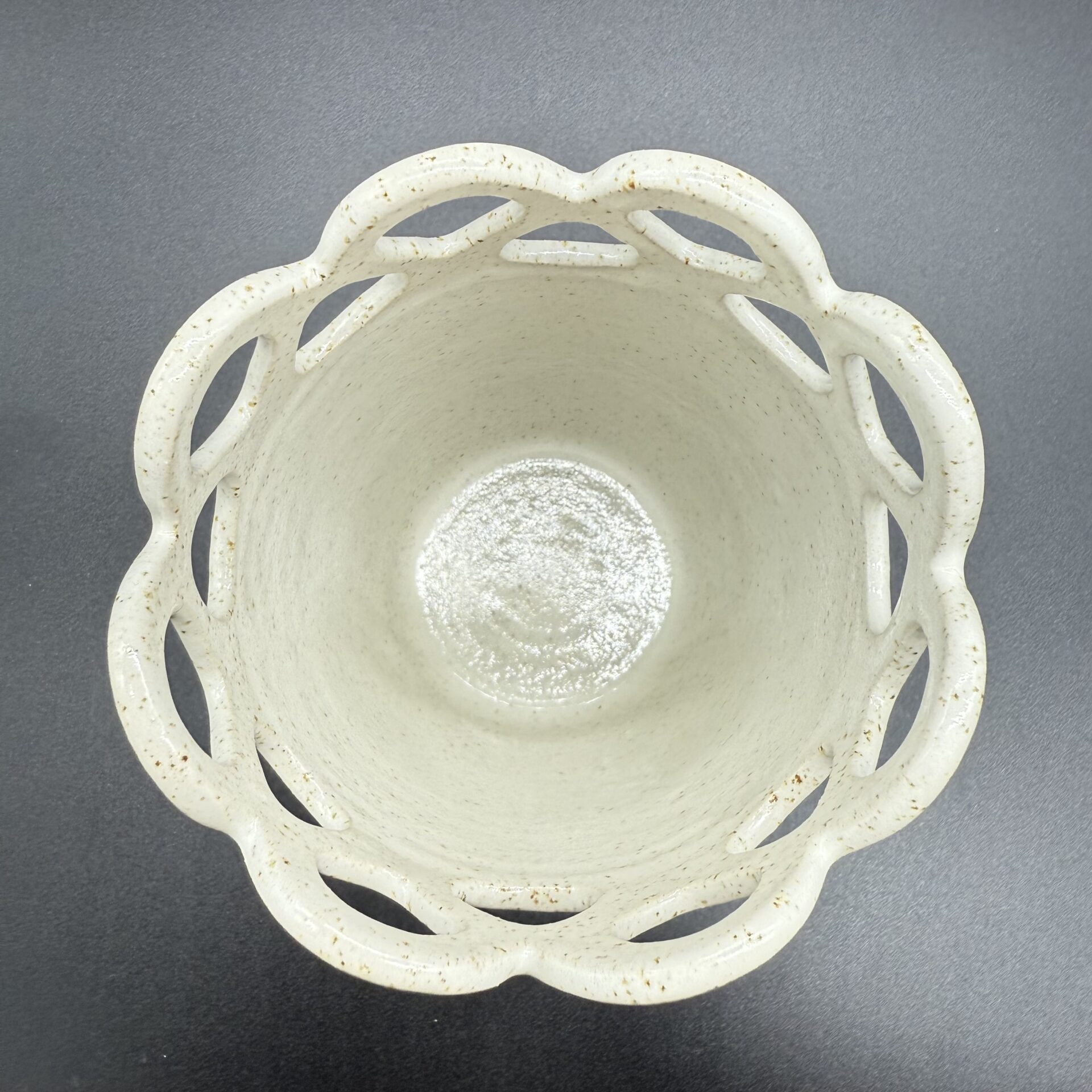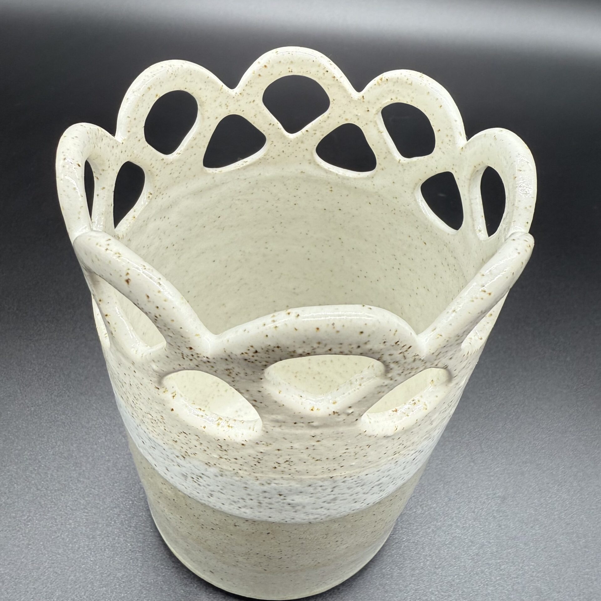 Fait main En grès blanc pyrité Email Blanc & Gris, ponctué de points de pyrites