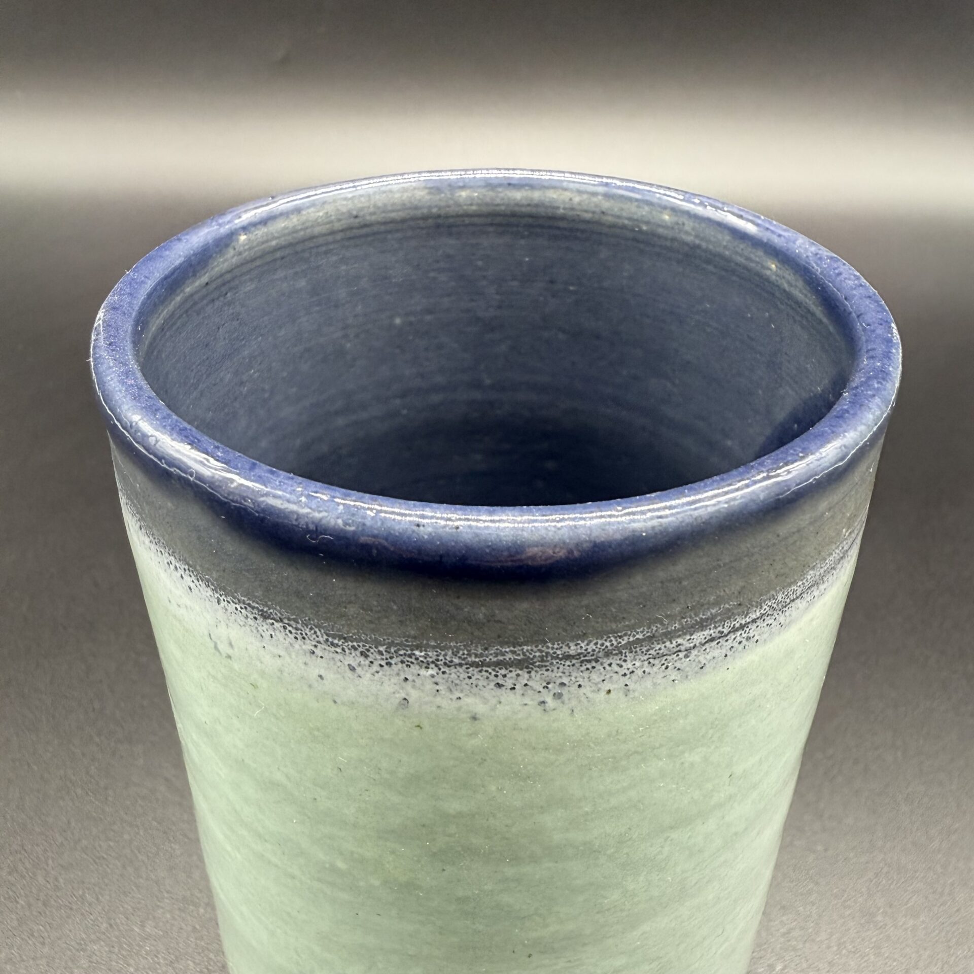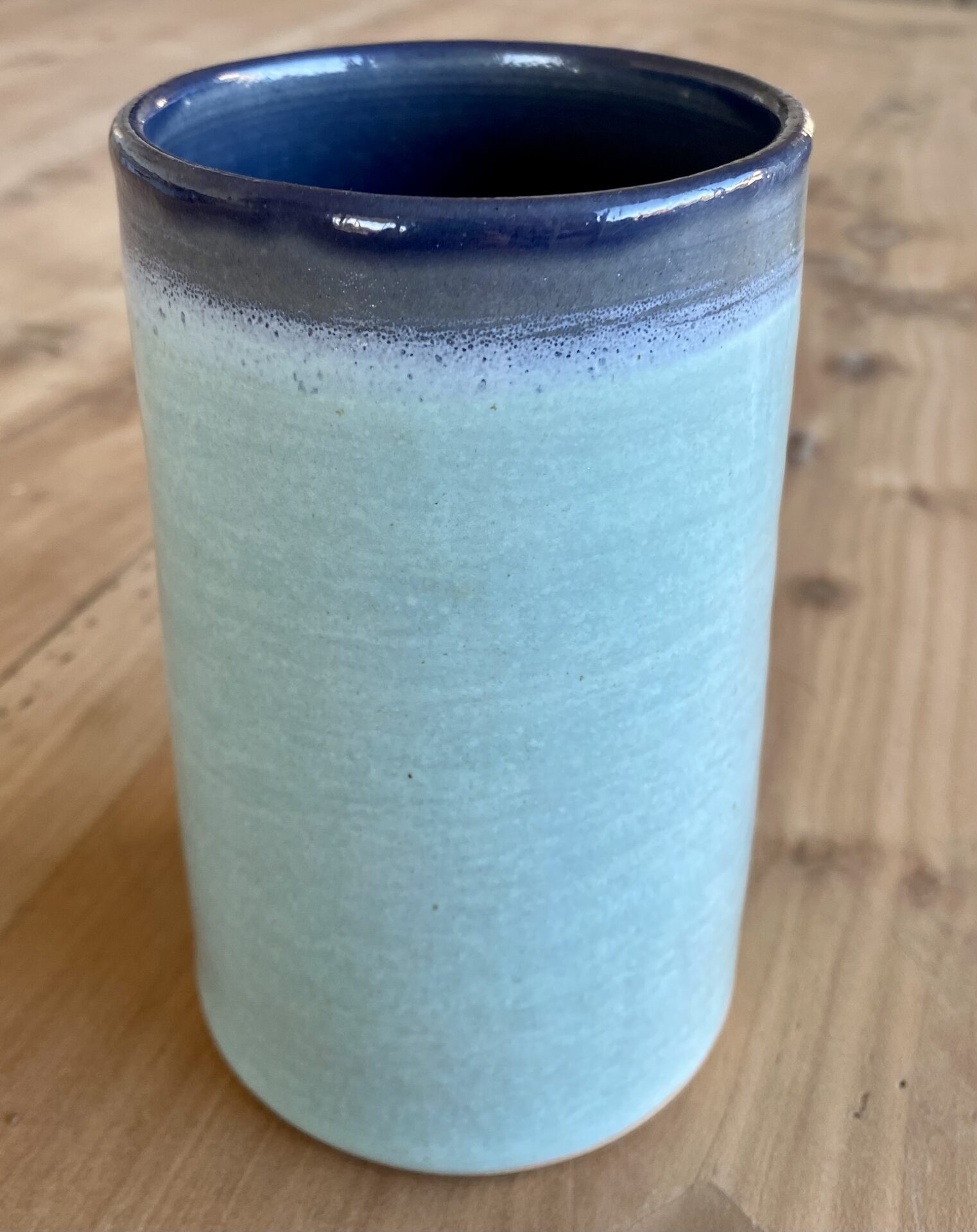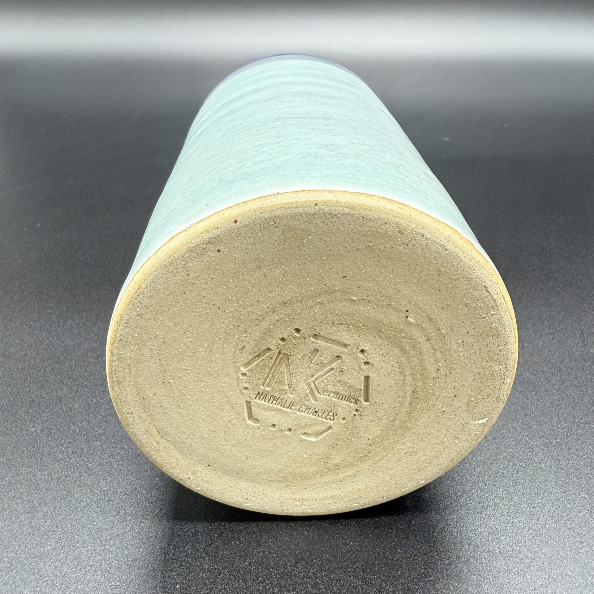Emaillé en 2 couleurs : Turquoise et Bleu Marine (haut et intérieur du vase)